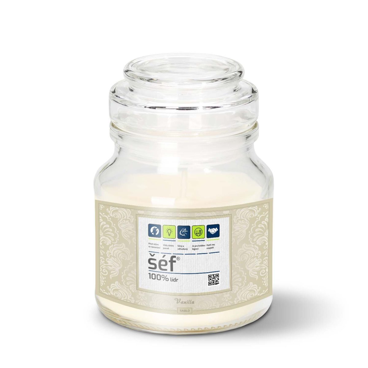 Svíčka ve skle s originálním motivemPotěšte své blízké neobvyklým dárkem, svíčkou s vlastní etiketou. Svíčku můžete věnovat k mnoha událostem. Ať už se jedná o dárek k narozeninám, Valentýnu, svatbě, narození miminka a mnoho dalších, tento personalizovaný dárek se setká s úspěchem.vůně: vanilkavarianta 120g doba hoření 28 hodinšířka 7 cm, výška 10 cm varianta 500g doba hoření 100 hodinšířka 14 cm, výška 10 cm