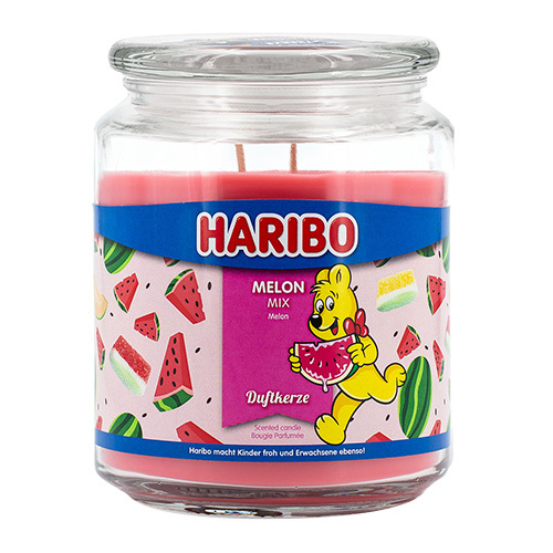 Užijte si letní vůni broskve, melounu, okurky a jahody s tóny růže, konvalinek a jasmínu.Svíčky Haribo jsou sladkou inspirací želé bonbony této známé a oblíbené značky. Originální výrobek, který navodí příjemnou atmosféru v každém interiéru! Tato svíčka je skvělým dárkem pro každého, kdo má rád sladké.Vonná svíčka Haribo ve skleněné dóze se skleněným víčkem obsahuje parafínový vosk a 2 bavlněné knoty, které zajišťují čisté hoření a rychlé vytvoření voskového jezírka pro co nejdokonalejší provonění prostoru. Svíčka vykouzlí příjemnou atmosféru a provoní prostor po dobu až 100 hodin.Hmotnost: 510 g.