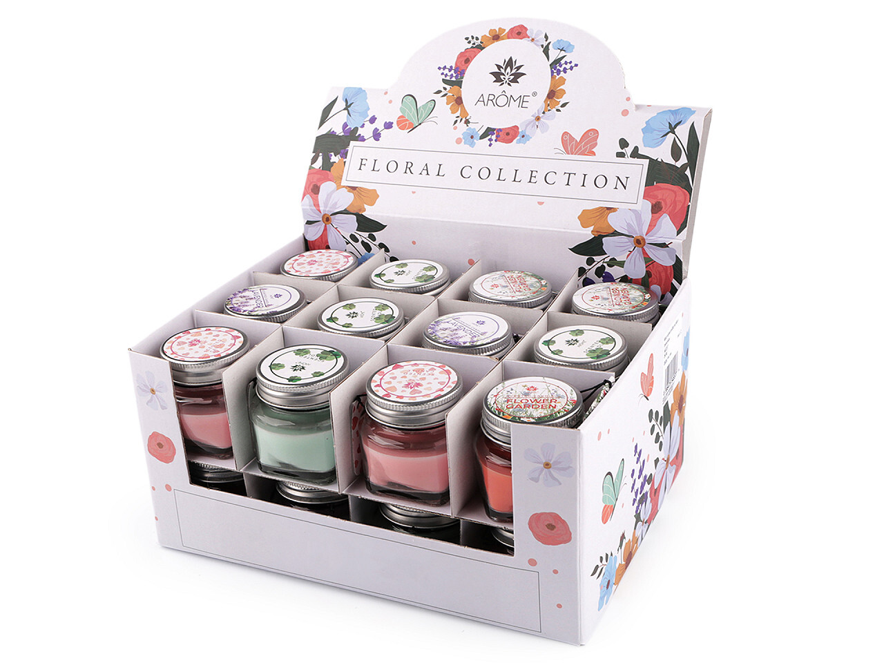 Malá vonná svíčka ve skle s jmenovkou 28 g - 24 ks - mix č. 2