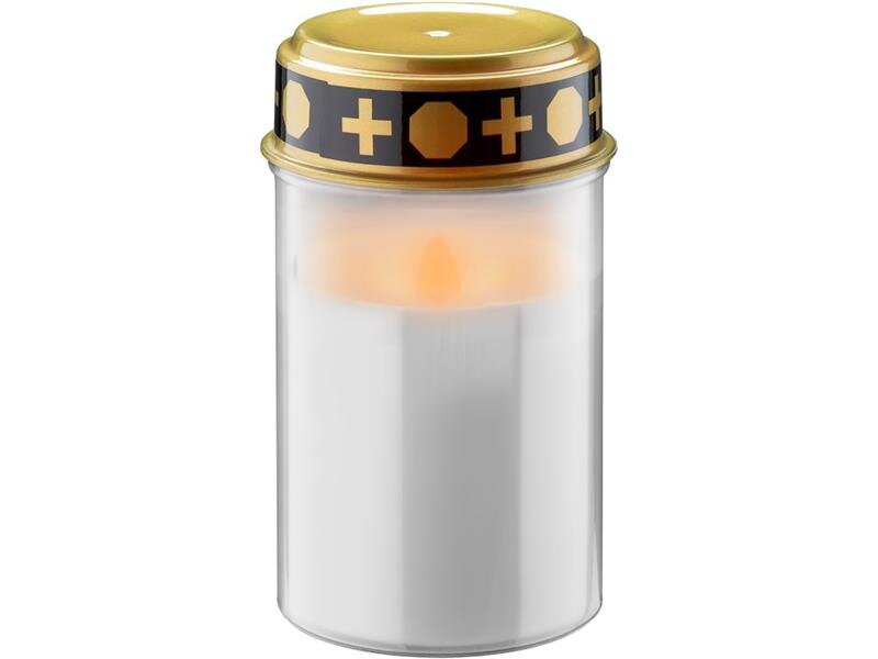 Náhrobní svíčka vytváří na hřbitově, na místech posledního odpočinku a památnících atmosféru tepla a oddanosti, zejména za soumraku a v tmavších měsících roku. Jemně zářící světlo vás nejen doprovází ve chvílích vzpomínek, ale také odolává větru a počasí - pro spolehlivé a dlouhotrvající světlo na místě posledního odpočinku. Elegantní náhrobní svítidlo v decentním bílém designu se zlatými a černými akcenty pro teplé světlo za soumraku i v noci. Na rozdíl od skutečných svíček, elektrická náhrobní lampa nevyžaduje každodenní výměnu svíčky, místo toho svítí přibližně 6 měsíců na jednu sadu baterií. Voděodolné víčko chrání pamětní svíčku před vlhkostí, takže ji lze umístit přímo na hrob nebo do náhrobní lucerny. S vypínačem a funkcí časovače pro 6hodinový interval svícení (opakuje se každých 24 hodin). S diskrétním vypínačem umístěným vedle LED uvnitř náhrobní svíčky, dosažitelným přes odnímatelné víko. Náhrobní svítidlo je vhodné pro vnitřní i venkovní použití - díky krytí IP44 a vodotěsnému prostoru pro baterie uvnitř svíčky. Rozměry: 12,3 x 7,3 cm, napájeno bateriemi (2x C/LR14, nejsou součástí balení). Světelná barva: teplá bílá