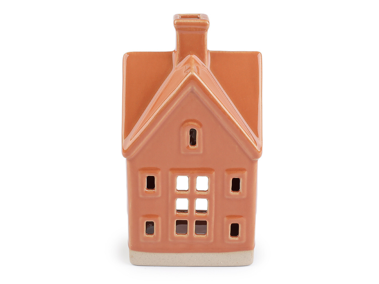 Keramická chaloupka / domeček na svíčku - 1 ks - 3 terakota