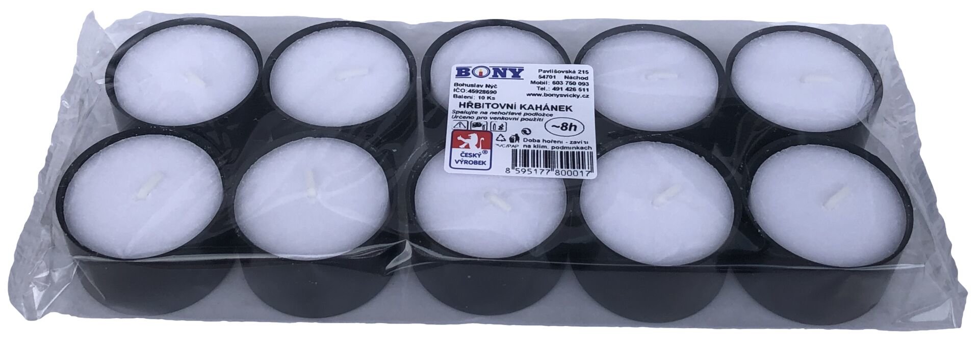 Tento produkt kombinuje jednoduchost, praktičnost a dlouhou dobu hoření v jednom. V balení najdete 10 kusů svíček, což zaručuje, že vždy budete mít dostatek světla po ruce. Minimalistický černý design se hodí k tradičním i moderním dekoracím a najde své využití tam, kde se chce zachovat důstojná a nenápadná atmosféra.