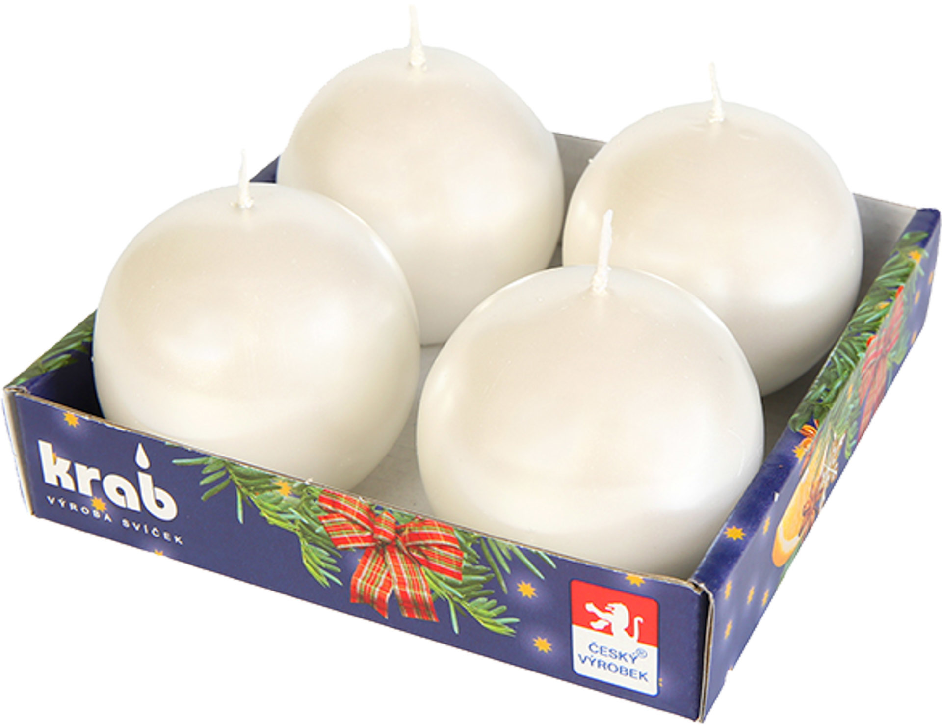 Svíčka adventní koule 60 mm - metalická bílá perleť (4ks)