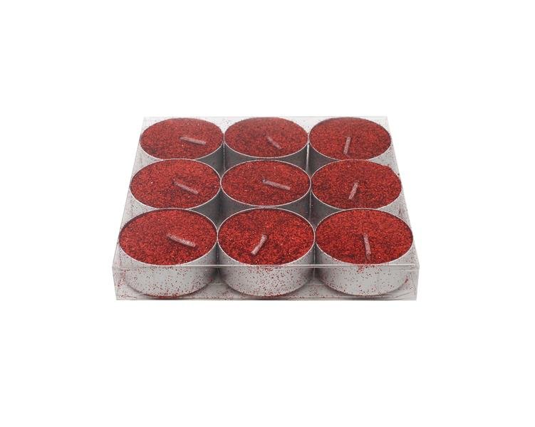 Jednoduché, ale působivé zdroje světla, které okamžitě promění interiér a navodí příjemnou a útulnou atmosféru. Třpytivý design v červené barvě dodává svíčkám jedinečný vzhled, který zaujme na první pohled. Sada obsahuje 9 kusů čajových svíček, každá s dobou hoření přibližně 4 hodiny - ideální pro dlouhé chvíle uvolnění nebo slavnostní momenty.