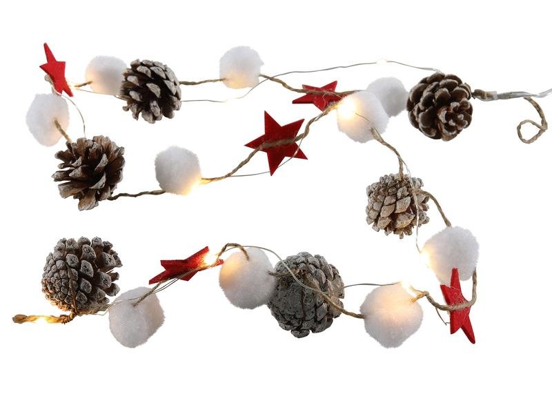 ŘETĚZ 10LED BAVLNĚNÉ KOULE SE ŠIŠKAMI, HVĚZDY ČASO