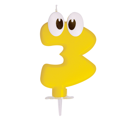 Číslová sviečka so stojančekom "3", 80 mm, 1ks