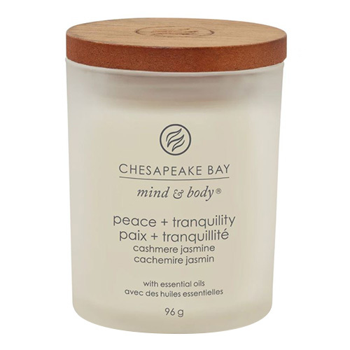 Nalezněte klid a mír s touto vůní exotického jasmínu, bílého pižma a jemného kašmírového dřeva.Svíčka z kolekce Mind and Body přináší wellness do vašeho domova. Vysoce kvalitní matné sklo, sójový vosk nasycený vybranými vonnými esencemi, společně s přírodním knotem poskytne úžasný zážitek z vůně.Unikátní je také víčko ze dřeva. Svíčky jsou v uklidňujících barvách.Tato neodolatelná svíčka značky Chesapeake Bay Candle nabízí až 28 hodin skutečného potěšení z vůně.