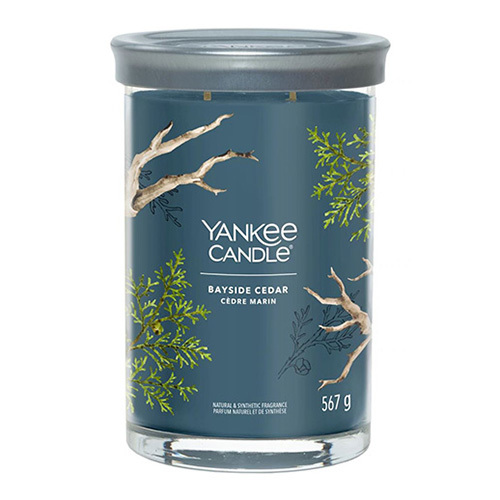 CANDLE YC SIGNATURE LARGE TUMBLER BAYSIDE CEDAR představuje perfektní způsob, jak si doma vytvořit příjemnou atmosféru plnou tepla a relaxace. Tento vonný svícen vás okouzlí svým elegantním designem i jedinečnou vůní, která vám připomene procházku po okolí moře a cedrových lesů.