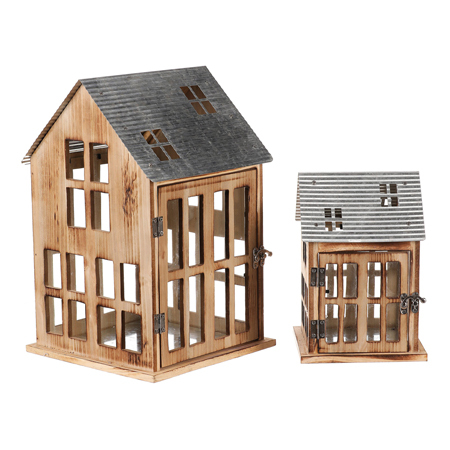 Lucerna dřevěná - tvar domečku, barva přírodní, cena za sadu 2 velikostí.