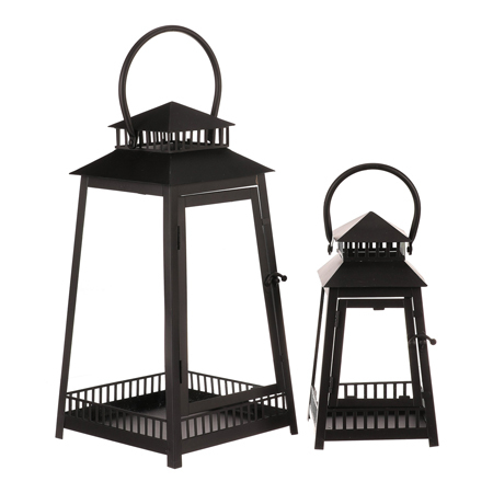 Lucerna kovová - čtyřboká, barva černá, cena za sadu 2 velikostí.