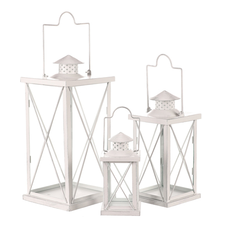 Lucerna kovová - čtyřboká, barva bílá, cena za sadu 3 velikostí.
