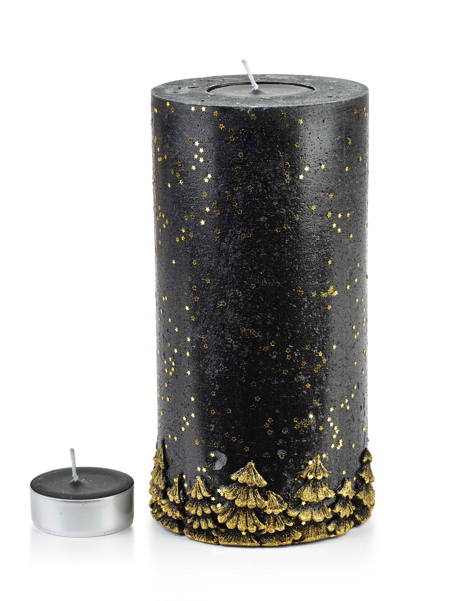 ŚWIECA LAMPION WALEC LAS CZARNO ZŁOTY 240