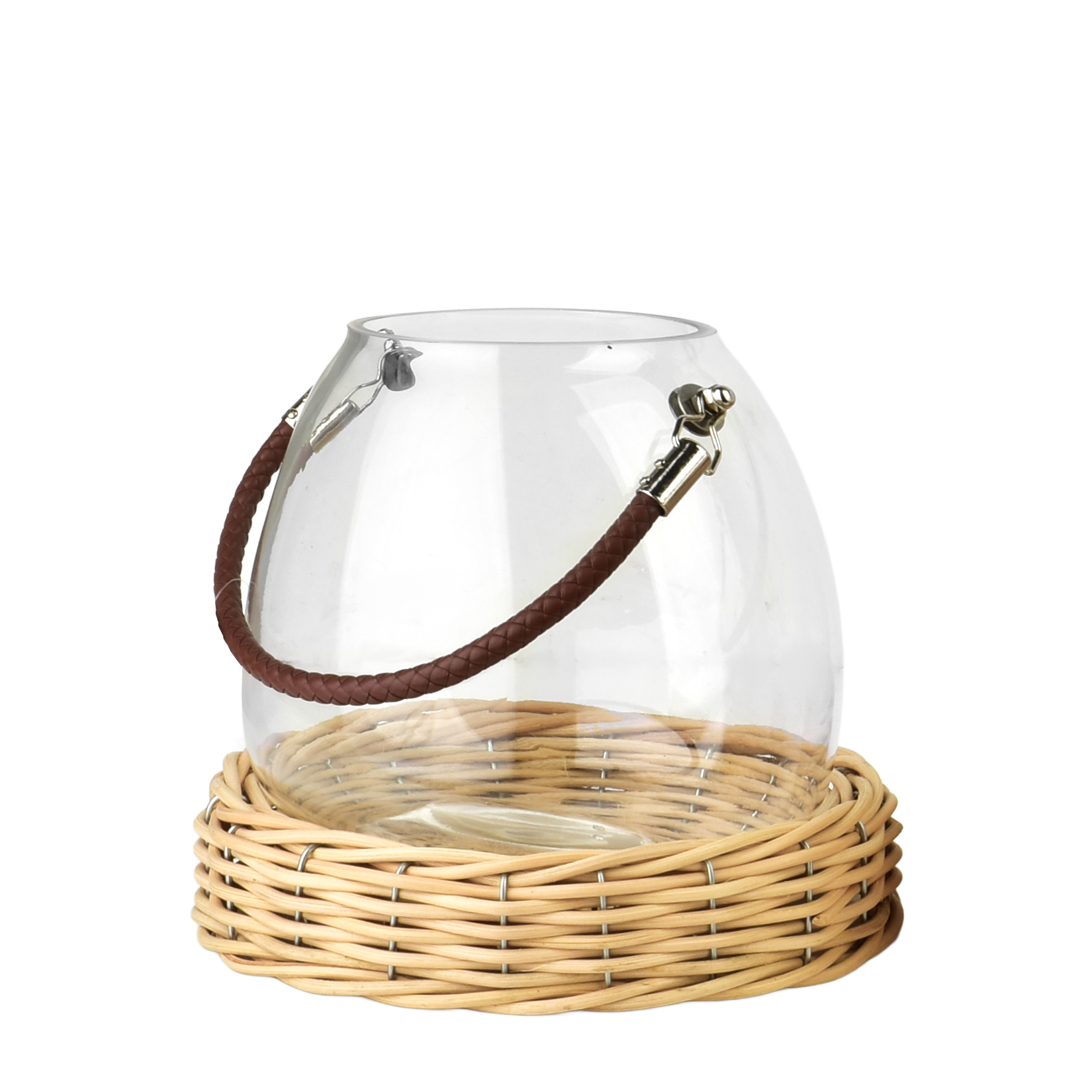 GUSTAV Lampion szklany 21,5cmz wiklinową podstawą