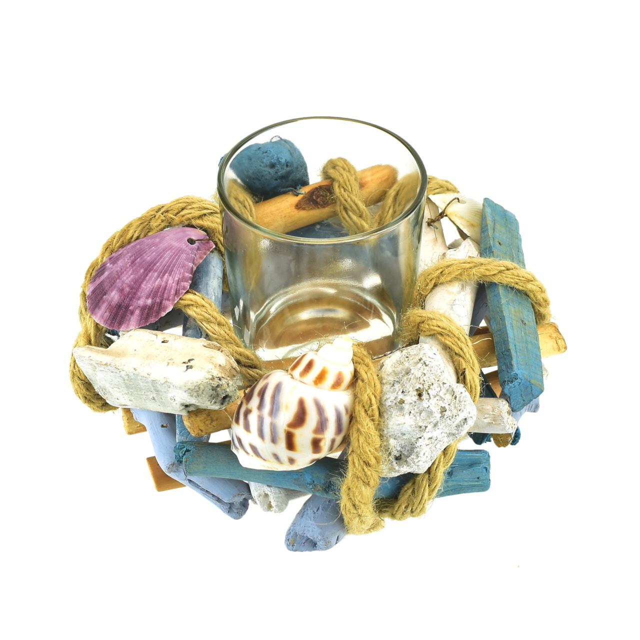 Elegantní design svícnu je ozdoben jemnými mořskými dekoracemi, jako jsou skutečné mušle a kameny, které dodávají výrobku jedinečný charakter. Přírodní materiály v podobě propletených dřívek a tlustého provázku podtrhují rustikální styl, který se hodí jak do moderního, tak i tradičního bydlení.
