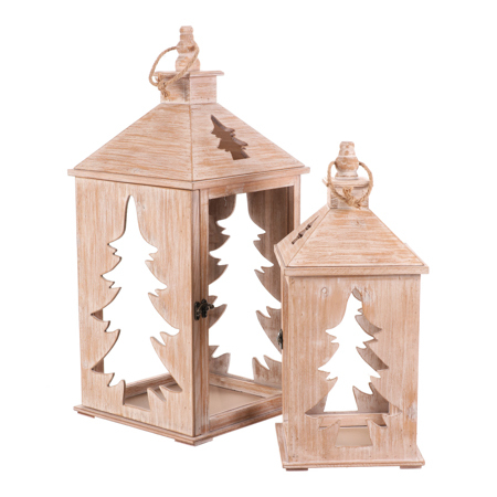 Lucerna dřevěná - vzor jehličnanu, cena za sadu 2 ks