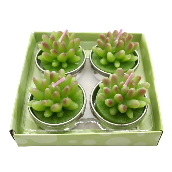 Svíčka ve tvaru kaktusu nebo sukulentu ve svícnu - 4ksdekorativní svíčka ve tvaru kaktusu nebo sukulentu, vhodná jako dekorace. Každá svíčka obsahuje také svícínek. číst celé
