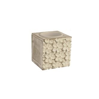 Dekorační svícen na jednu svíčku. Rozměry : 6 x 6 cm, výška 6,3 cm. Barva : bílá. Materiál na bázi dřeva.