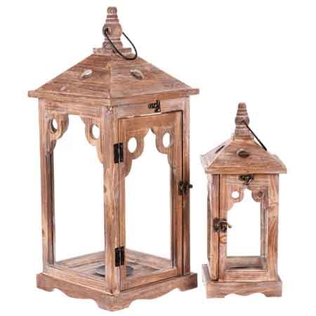 Lucerna dřevěná, barva hnědá, sada 2 kusy