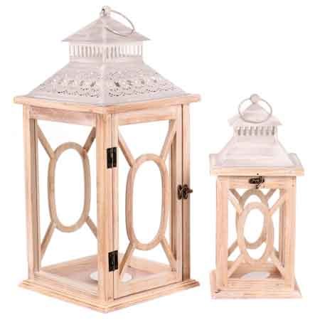 Lucerna dřevěná, barva přírodní, sada 2 kusy