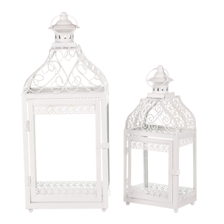 Lucerna kovová v bíle barvě, sada 2ks. Cena za sadu.
