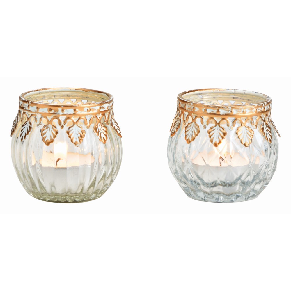Svícen skleněný s pokoveným ornamentem 6x6x5 cm