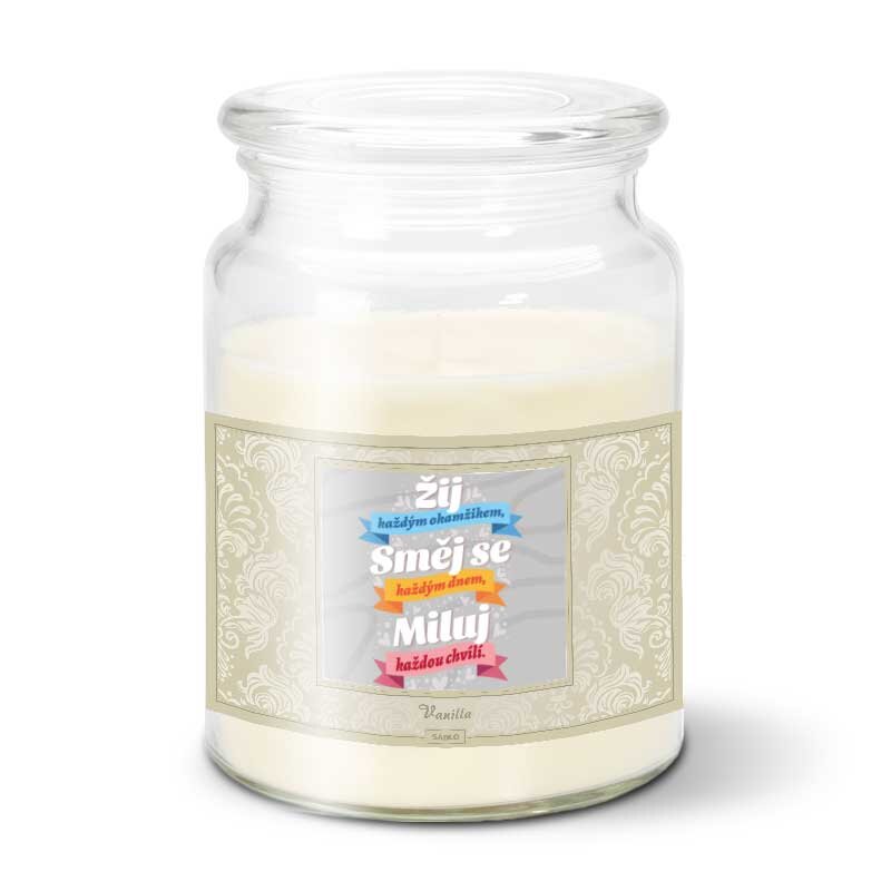 Svíčka ve skle s originálním motivemPotěšte své blízké neobvyklým dárkem, svíčkou s vlastní etiketou. Svíčku můžete věnovat k mnoha událostem. Ať už se jedná o dárek k narozeninám, Valentýnu, svatbě, narození miminka a mnoho dalších, tento personalizovaný dárek se setká s úspěchem.vůně: vanilkavarianta 120g doba hoření 28 hodinšířka 7 cm, výška 10 cm varianta 500g doba hoření 100 hodinšířka 14 cm, výška 10 cm
