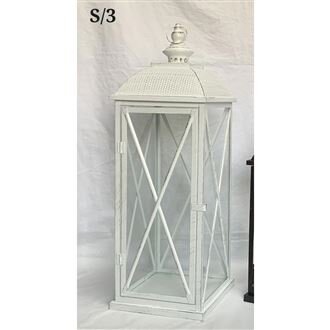 Lucerna kovová malá.Rozměry : 13 × 13 cm, výška 34 cm. Barva : bílá.Materiál : kov, sklo. číst celé