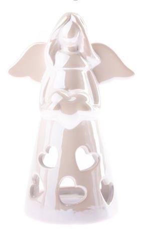 Keramický svícen - anděl růžový 17 cm
