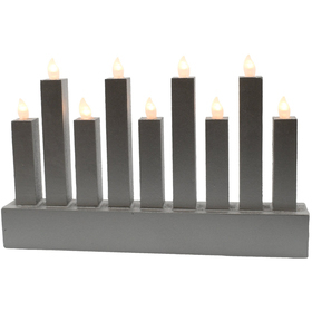 Svícen 9 LEDBarva světla: teplá bíláMateriál MDF + PlastStříbrná barvaNapájení 3xAAČasovač: 6/18 hRozměry: 25 x 3 x 16 cm číst celé