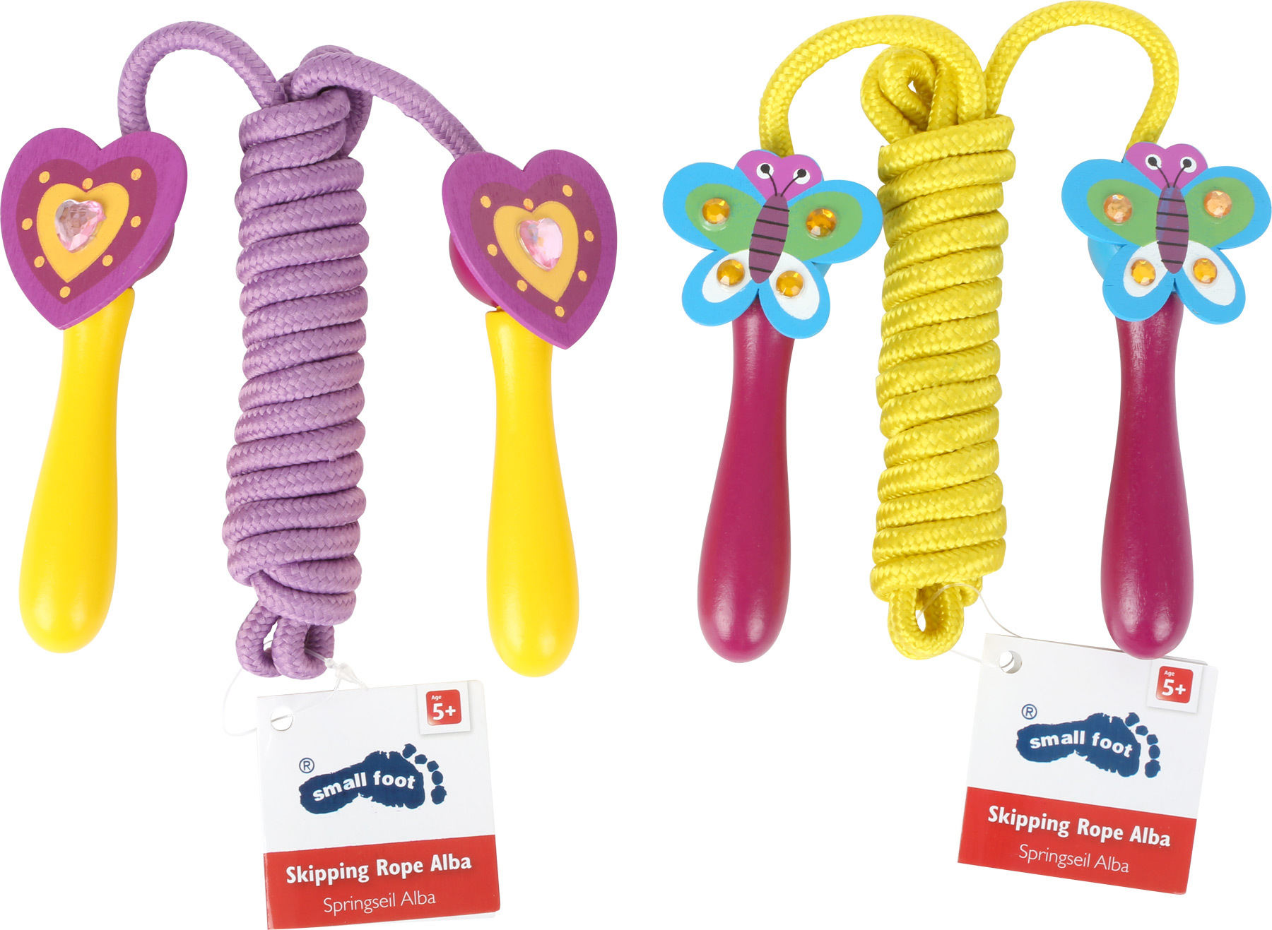 Švihadlo Alba 2ks Krásně barevná dřevěná madla a třyptivé drahokamy nabudí děti k pohybu. Tato odolná švihadla naučí děti rovnováze a důležitosti fyzické aktivity. Německá firma Legler zaměřená na výrobu kvalitních dřevěných hraček od roku 1996. Všechny dřevěné hračky značky small foot mají označení CE a jsou vyráběny dle evropské normy pro bezpečnost hraček EN 71. Použité barvy jsou speciálně vyvinuty pro dřevěné hračky a jsou odolné i proti slinám dětí. Dřevo, které se používá pro tyto hračky, většinou pochází z lesnických společností zapojených do zalesňování. To nabízí všem zákazníkům možnost přispět k zachování přirozeně rostoucích lesů. Dřevěné hračky small foot jsou zářivě barevné produkty, které jsou vyrobeny převážně z přírodních surovin - dřeva. Dětem dělají radost od útlého věku, rozvíjí jejich hmatové a smyslové dovednosti. Cílem značky small foot je podporovat duševní a fyzický vývoj dětí.