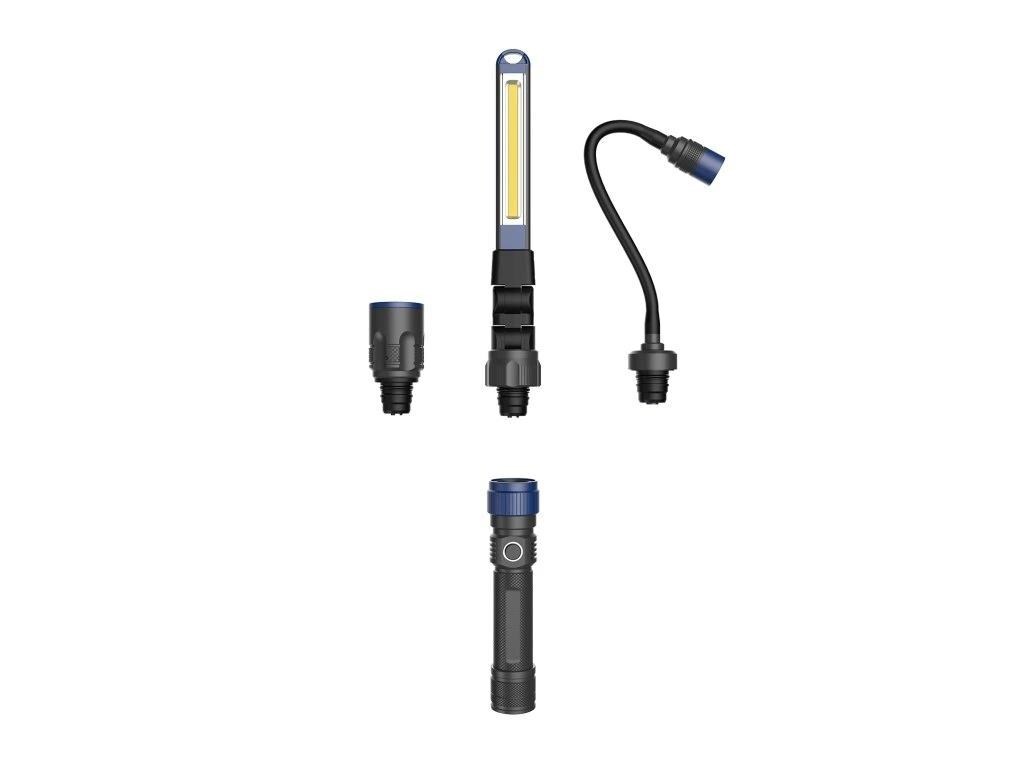 Toto pracovní světlo nabízí svítivost 380 lm, tři vyměnitelné hlavice (standardní, ohebná, LED pásek) a skvělou odolnost díky ochraně IPX4 a IK07, což z něj činí nepostradatelného pomocníka pro každou situaci.