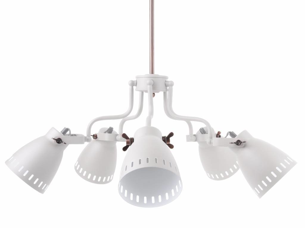 Závěsná lampa/lustr s 5-ti žárovkami v bílé barvě.