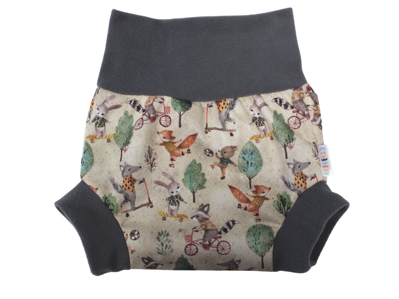 Natahovací svrchní kalhotky PUL - Vlk na koloběžce__VELIKOST:S (4-7kg)
