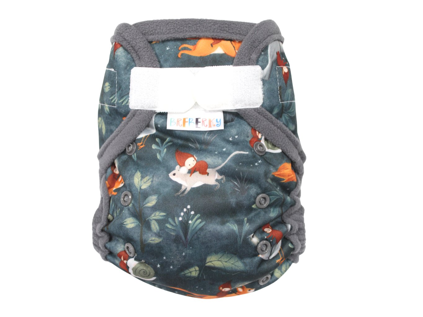Nebo lidově s "dvojitými gumičkami" má rozšířenou část mezi nožičkami a těsněji je obepíná. Skvěle se hodí u miminek s řidší stolicí anebo hubenými nožkami.