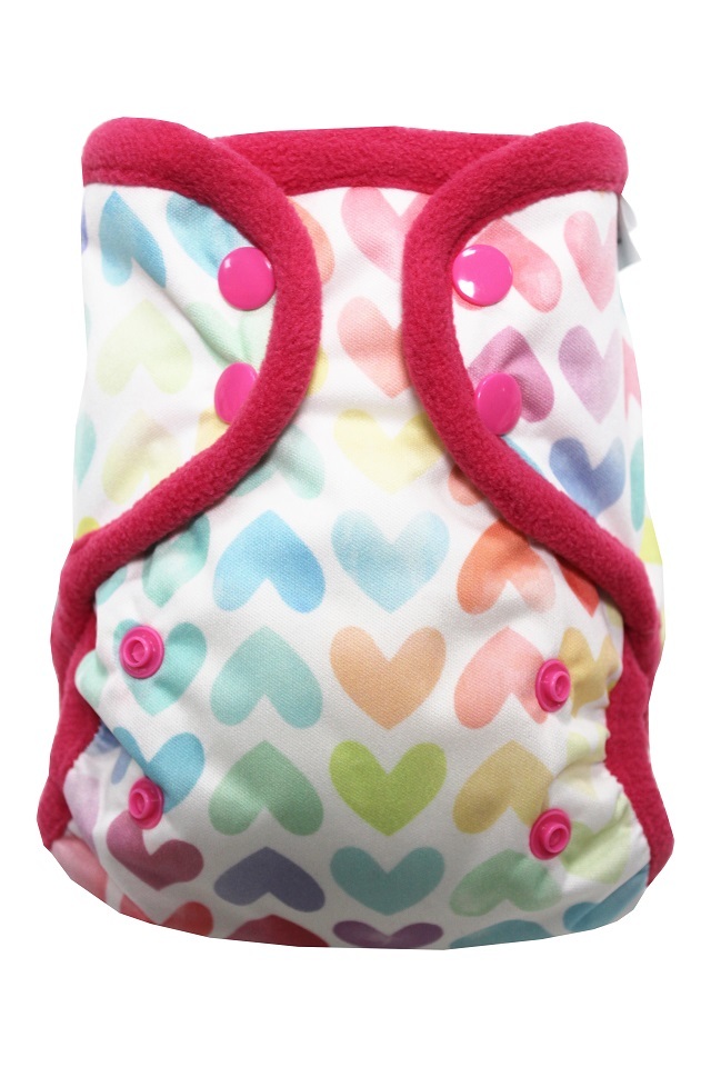 Svrchní kalhotky (S), bez křidélek - Duhová srdíčka PAT