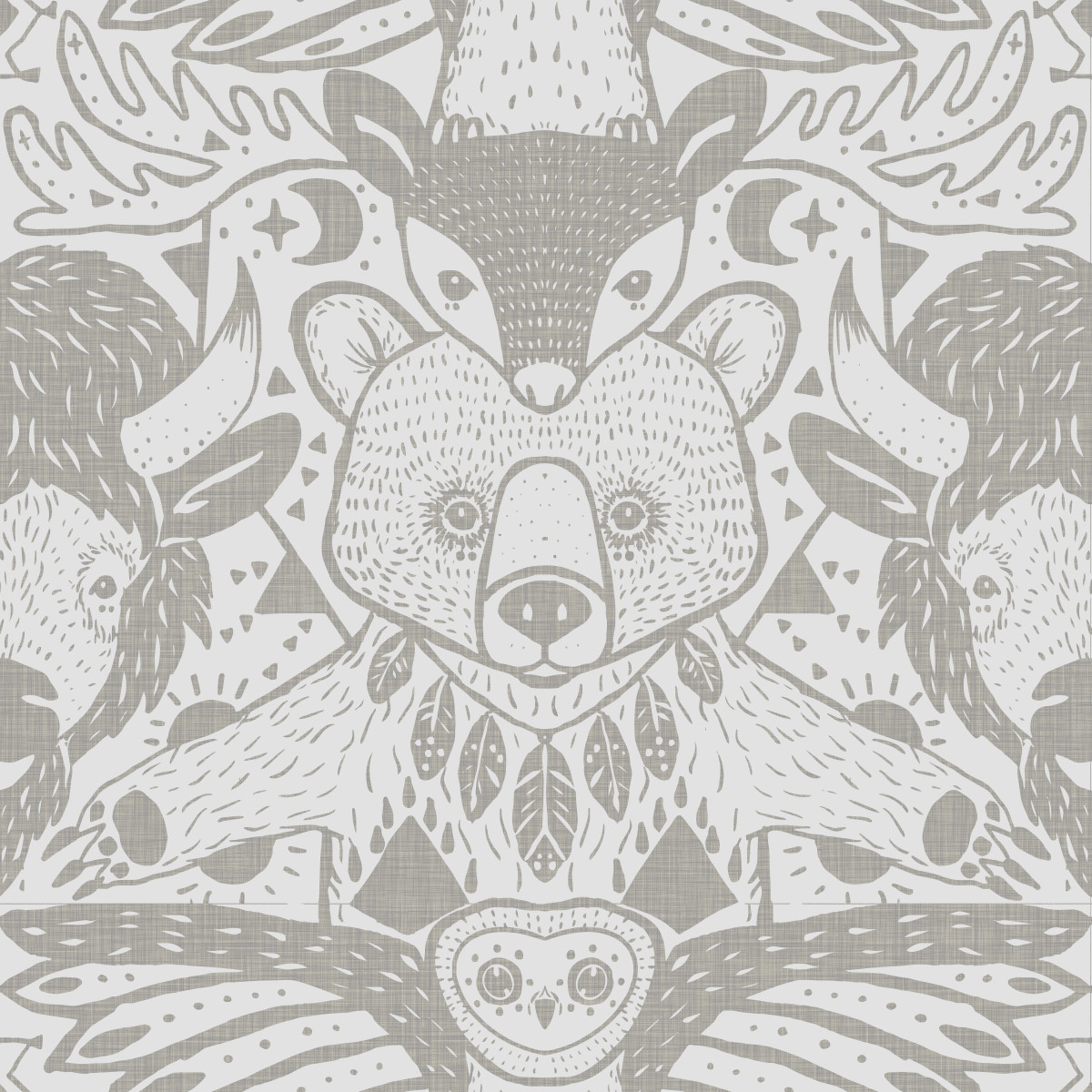 Svrchní kalhotky (M), bez křidélek - Lesní totem SZ, světle šedý fleece
