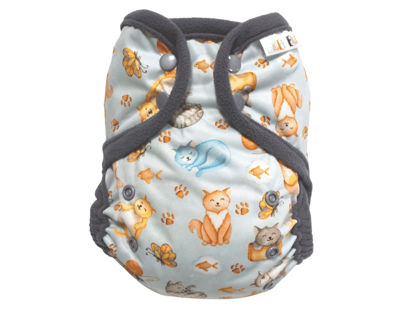 Nebo lidově s "dvojitými gumičkami" má rozšířenou část mezi nožičkami a těsněji je obepíná. Skvěle se hodí u miminek s řidší stolicí anebo hubenými nožkami.