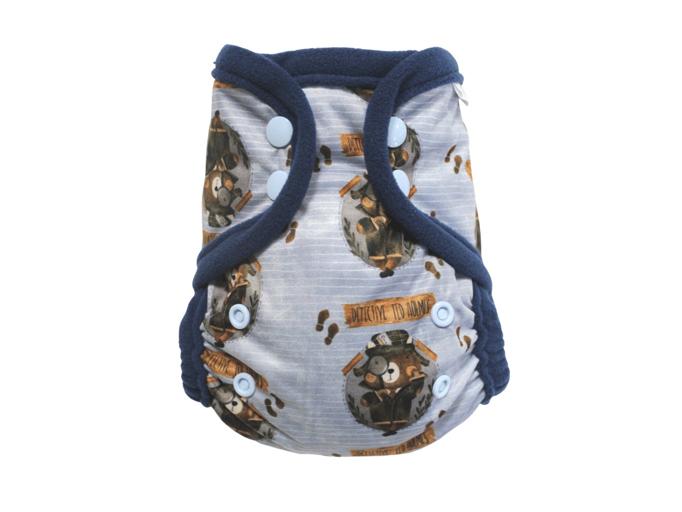 Nebo lidově s "dvojitými gumičkami" má rozšířenou část mezi nožičkami a těsněji je obepíná. Skvěle se hodí u miminek s řidší stolicí anebo hubenými nožkami.
