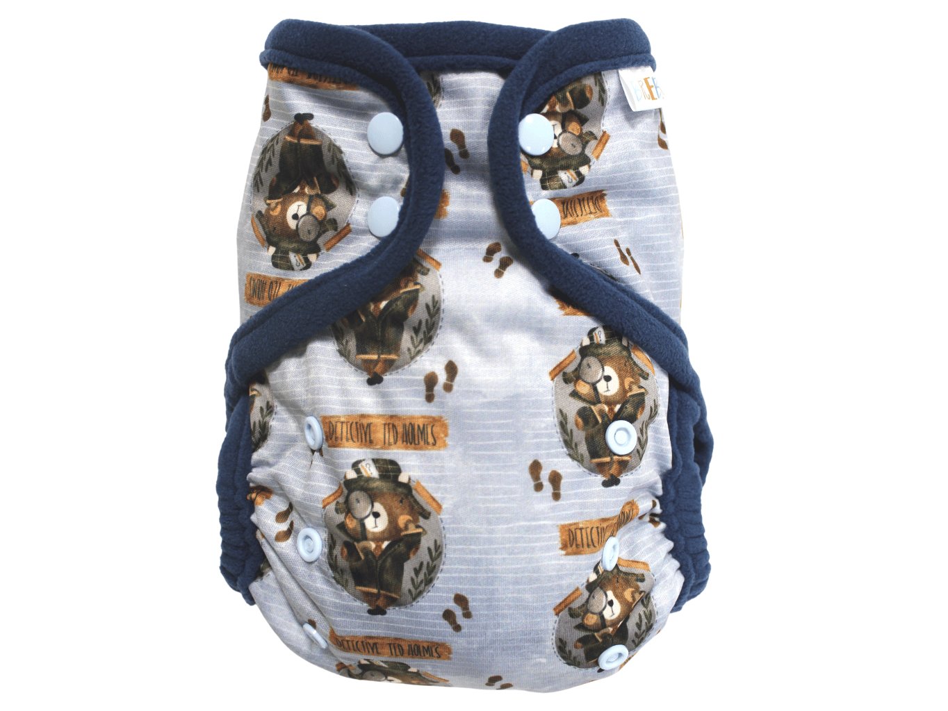Nebo lidově s "dvojitými gumičkami" má rozšířenou část mezi nožičkami a těsněji je obepíná. Skvěle se hodí u miminek s řidší stolicí anebo hubenými nožkami.