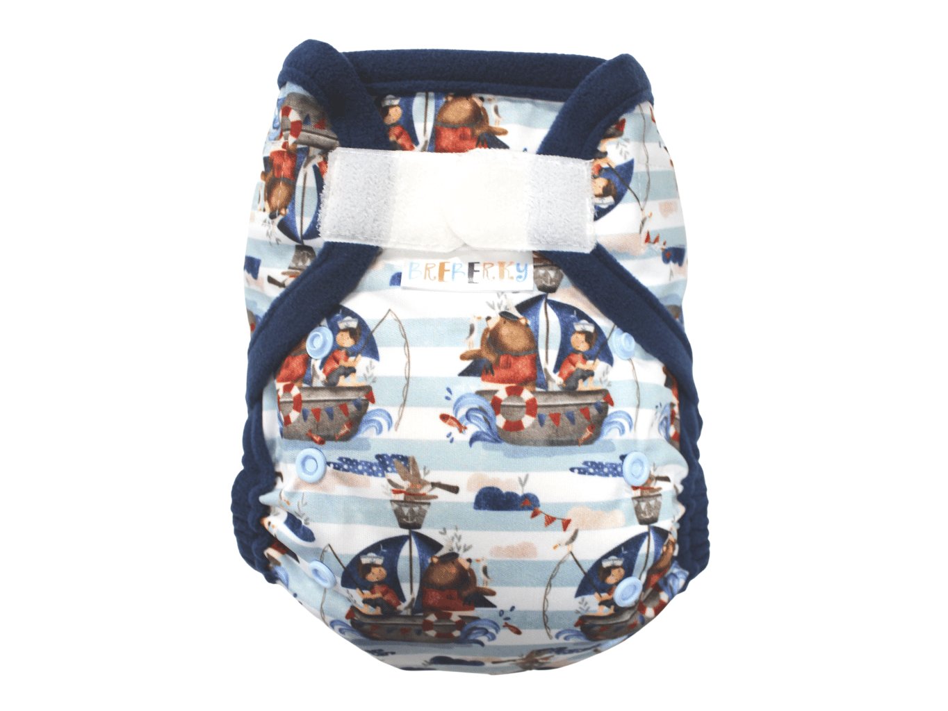 Nebo lidově s "dvojitými gumičkami" má rozšířenou část mezi nožičkami a těsněji je obepíná. Skvěle se hodí u miminek s řidší stolicí anebo hubenými nožkami.