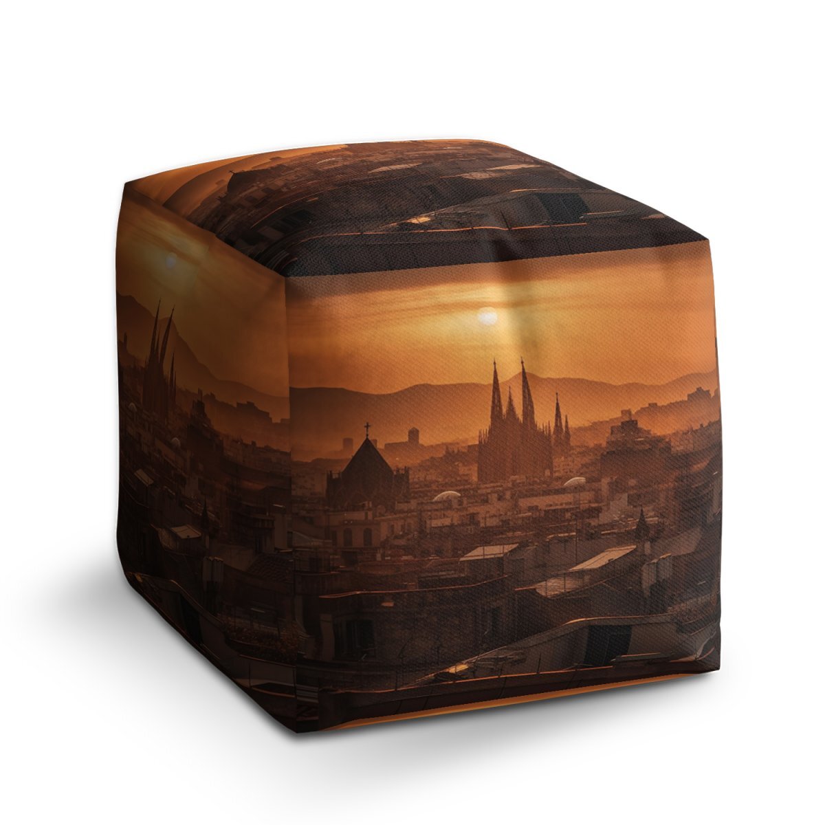 Taburet Cube Barcelona Night Skyline: 40x40x40 cm