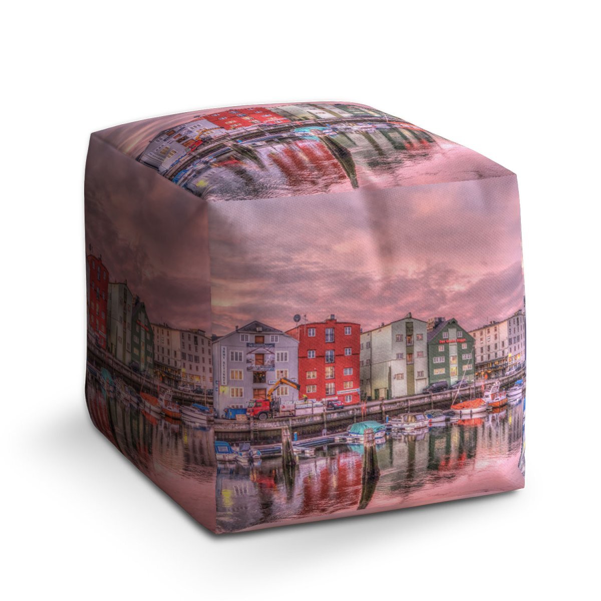 Taburet Cube Barevné domky na pobřeží: 40x40x40 cm
