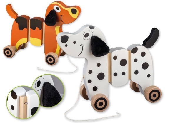 Dřevěný pejsek dalmatin nebo jezevčík na kolečkách tahací. Jednotlivé díly jsou spojeny provázky. Pejsek jezdí a hýbe se. Kvalitní dřevěná hračka, vyrobená z masívního bukového dřeva číst celé