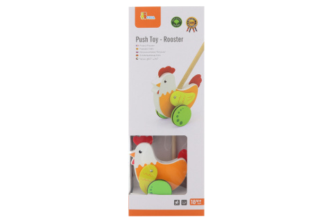 Dřevěná hračka na tyči Viga slepička je skvělou alternativou tahacích hraček pro děti. Perfektní edukační hračka. Ideální na společné procházky a hraní doma. Gumové prvky připojené na kola vtipným způsobem napodobují chůzi zvířat. Hračka pomáhá zlepšit manuální zručnost a obratnost, učí dítě rozpoznat tvary a barvy, zapojuje a rozvíjí smysl pro pozorování. Hračka je vyrobena z lakovaného dřeva. Naší prioritou je bezpečnost a kvalita našich výrobků, a proto barvy použité na hračkách nejsou toxické a splňují bezpečnostní standardy (EN71 a ASTM). Rozměry hračky: dxvxš 15x8,3x5,6 cm. Určeno pro děti od 2 let.