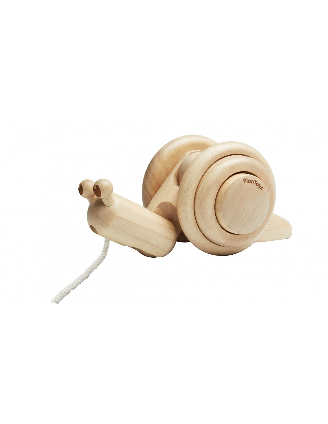 Tahací šnek v přírodních barvách je skvělým společníkem pro vaše batolata. Tato klasická tahací hračka pomáhá dětem rozvíjet hrubé motorické dovednosti a koordinační schopnosti. Plan Toys je již 30 let úspěšně fungující firma v oboru výroby vysoce kvalitních ekologických hraček. Firma vznikla v roce 1981 na jihu Thajska a v této oblasti funguje dodnes. Ve své produkci využívá dřevo z kaučukovníků, které již neprodukují latexové mléko. Společnost toto dřevo vykupuje od farmářů, pro které již nemá žádnou hodnotu, ale rovněž dbá na to, aby byly opětovně vysazovány stromy nové. Právě použitím těchto stromů je výroba trvale udržitelná, ekologická a navíc z vysoce kvalitního materiálu. Výrobní proces je navržen tak, aby se za využití solární energie a biomasy maximálně šetřila energie a nedocházelo k žádné produkci odpadu. PlanToys používá ve své výrobě hraček lepidlo bez formaldehydů a barvy na vodní bázi, které jsou bezpečné, bez olova a jiných těžkých kovů. Pro obaly a tištěné materiály se využívá recyklovaný papír. Hračky mají certifikáty pro ekologicky šetrné, sociálně prospěšné a ekonomicky životaschopné obhospodařování lesů a ISO 9001 (pro vysokou kvalitu produktů) a 14001 (management životního prostředí). Firma získala akreditaci o sociální odpovědnosti (OHSAS 18001), což vypovídá o perfektním vztahu k zaměstnancům a vytváření bezpečného a zdravého pracovního prostředí. Firma zaměstnává mimo jiné také osoby se zdravotním postižením, pravidelně sponzoruje mnoho aktivit pro děti, jako jsou dětské kluby, hřiště, knihovny a herny, ale dokonce i spolupracuje s maminkami dětí s různým postižením a spolu s nimi vytváří hračky, které mohou těmto dětem pomoci. Hračky od PlanToys podporují hru, kreativní mysl a učí děti o světě kolem nás. O jejich úspěchu vypovídají také desítky ocenění z celého světa.
