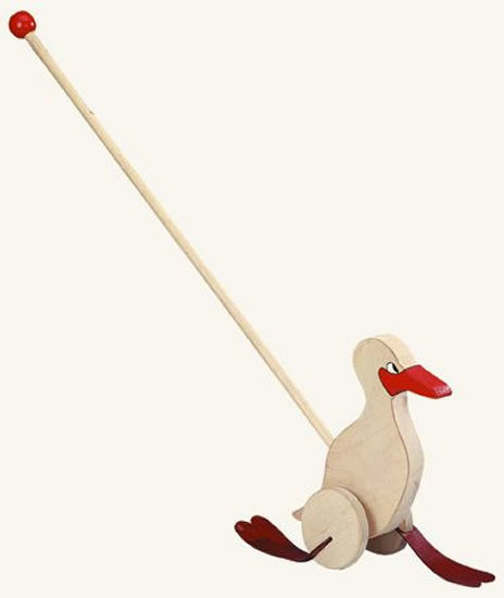 Jezdící kachna na tyči, při pohybu se jí otáčejí nohy a vydávají zvuky.Oblíbená dřevěná hračka pro nejmenší. Česká značka kvalitních dřevěných hraček z Klatov vyvážející své výrobky do celého světa.Všechny tyto dřevěné hračky mají zdravotní atest a splňují tak všechny normy EU.