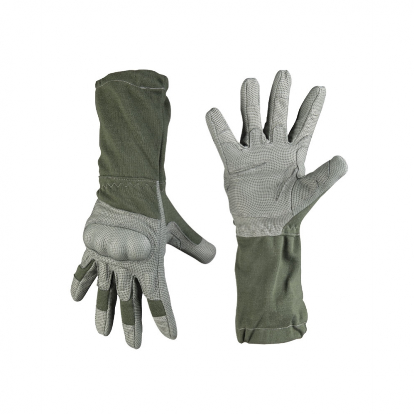 Taktické rukavice s ochranou kloubů od německé značky Mil-Tec.Vlastnosti:• s tepelně odolnou tkaninou Nomex (odolná proti popálení)• z vnitřní strany dlaně a prstů a na klobech vyztuženy kůží - zvýšená odolnost také proti probodnutí• klouby a dlaň vypolstrovány pro zvýšení pohodlí• elastická guma a vysoký lem zajišťije ochranu až k oděvu• vynikající poměr ceny a poskytované ochrany.Materiál: 100 % hovězí kůže s aramidovým materiálem Nomex DuPont