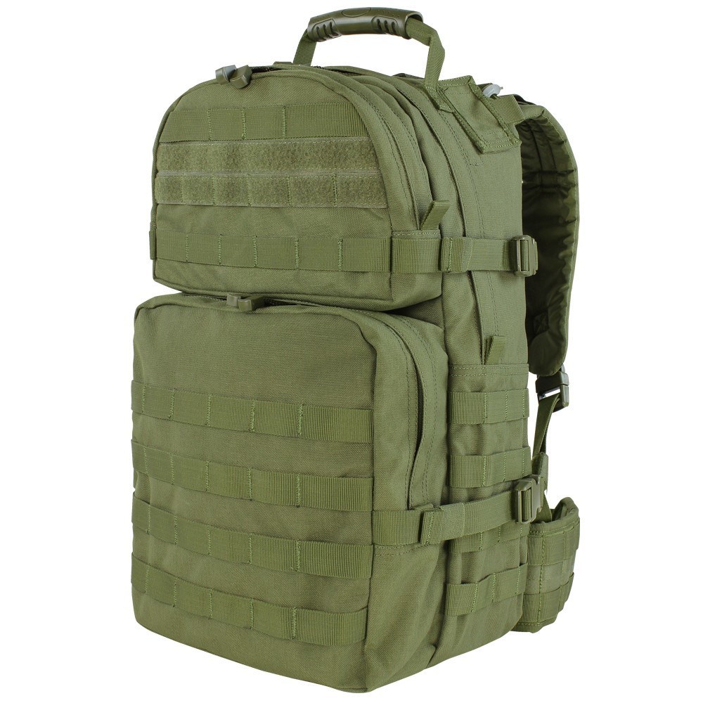 Střední modulární útočný batoh. Široké a pohodlně polstrované ramenní popruhy s hrudní sponou, fastexovými přezkami pro případ potřeby nouzového odhození batohu, a očky pro uchycení výstroje. Objem 35 litrů.
