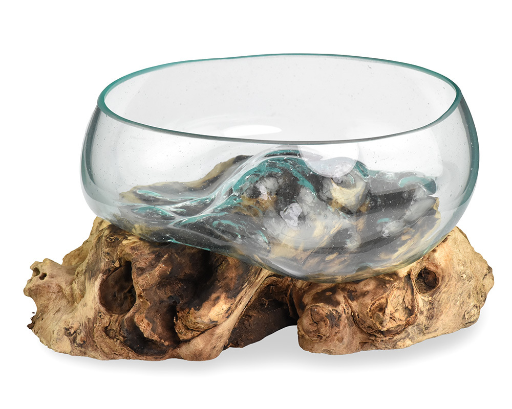 Skleněná mísa na dřevě 20 cm velká - var. C
