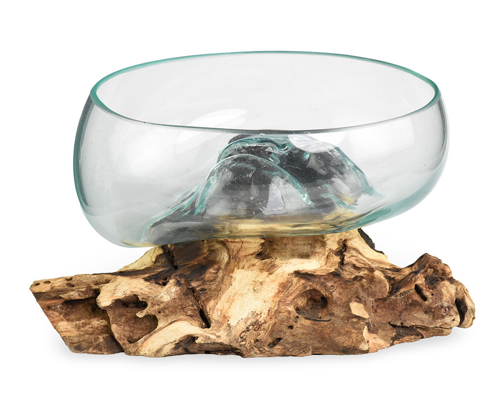 Skleněná mísa na dřevě 20 cm velká - var. A